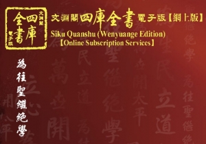 사고전서(四庫全書)는 5천년 동안의 중국 문명과 관련한 중요한 자료들로 구성되어 있는 데이터베이스입니다. 중국의 역사, 문학, 지리, 정치, 경제, 과학기술, 의학, 예술, 철학 등에 대한 내용을 수록하고 있으며, 희귀책 및 필사본에 대한 내용도 포함하고 있습니다. 사고전서는 청(淸) 고종(高宗) 건륭황제(乾隆皇帝)의 지시에 따라 1773~1782년 사이의 기간 동안 편찬되었습니다. 약 3,720 works 및 36,000권 이상의 내용을 담고 있으며, 약 8억 개 이상의 characters를 수록하고 있습니다. 또한 經,史,子,集 四部 分類 체제로 구성되어 있습니다.